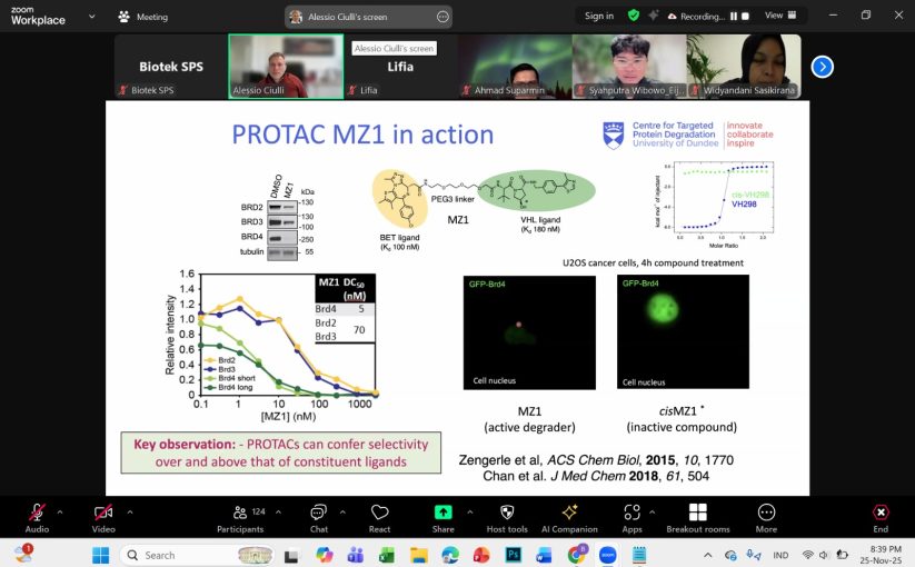 Kegiatan ini diharapkan memperkaya wawasan peneliti dan mahasiswa Indonesia dalam bidang targeted protein degradation dan memperkuat riset bioteknologi yang berorientasi pada inovasi desain obat molekuler.