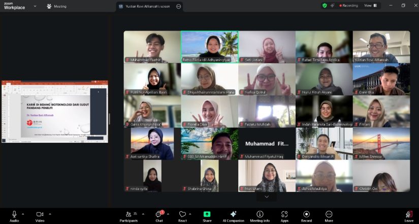The Biotechnology Master’s Program at Universitas Gadjah Mada (UGM) held another session of its Biotechnology Career Lecture on Friday, 7 November 2025. Organized online, the event aimed to expand students’ understanding of career opportunities and the evolving landscape of biotechnology research in Indonesia.